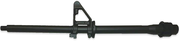 5.56 NATO CHAMBER. THREADED, 1/2-28 THREAD, WITH BARREL NUT, HANDGUARD CAP AND FRONT SIGHT HOUSING WITH BAYONET LUG, BARREL DIAMETER .750 AT FRONT SIGHT BASE. WEIGHT 45 OUNCES.