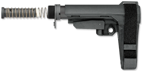 INCLUDES SB TACTICAL SBA3 ADJUSTABLE ARM BRACE, MIL-SPEC RECEIVER EXTENSION, CAR ACTION SPRING, 9MM CAR BUFFER, RECEIVER END PLATE, AND LOCK RING NUT.