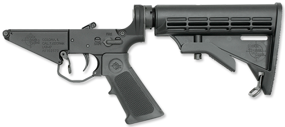 COMPLETE LOWER HALF WITH RRA TWO STAGE TRIGGER AND 6-POSITION TACTICAL CAR STOCK.