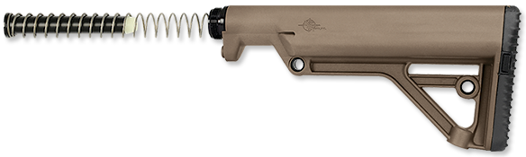 BUTTSTOCK WITH INTEGRAL RIBBED BUTTPAD, WATERTIGHT BATTERY STORAGE TUBES, RECEIVER EXTENSION, BUFFER AND BUFFER SPRING.