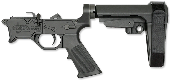 LAR-BT9G BILLET ALUMINUM LOWER WITH GLOCK COMPATIBLE FLARED MAGWELL, INTEGRAL WINTER TRIGGER GUARD, SINGLE STAGE TRIGGER AND SB TACTICAL SBA3 ADJUSTABLE ARM BRACE.