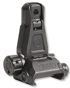 ALL STEEL CONSTRUCTION, WINDAGE ADJUSTABLE WITH LOW-PROFILE KNOB – NO TOOLS REQUIRED. FOR SAME PLANE MOUNTING, STANDARD AR SIGHT HEIGHT WHEN DEPLOYED.